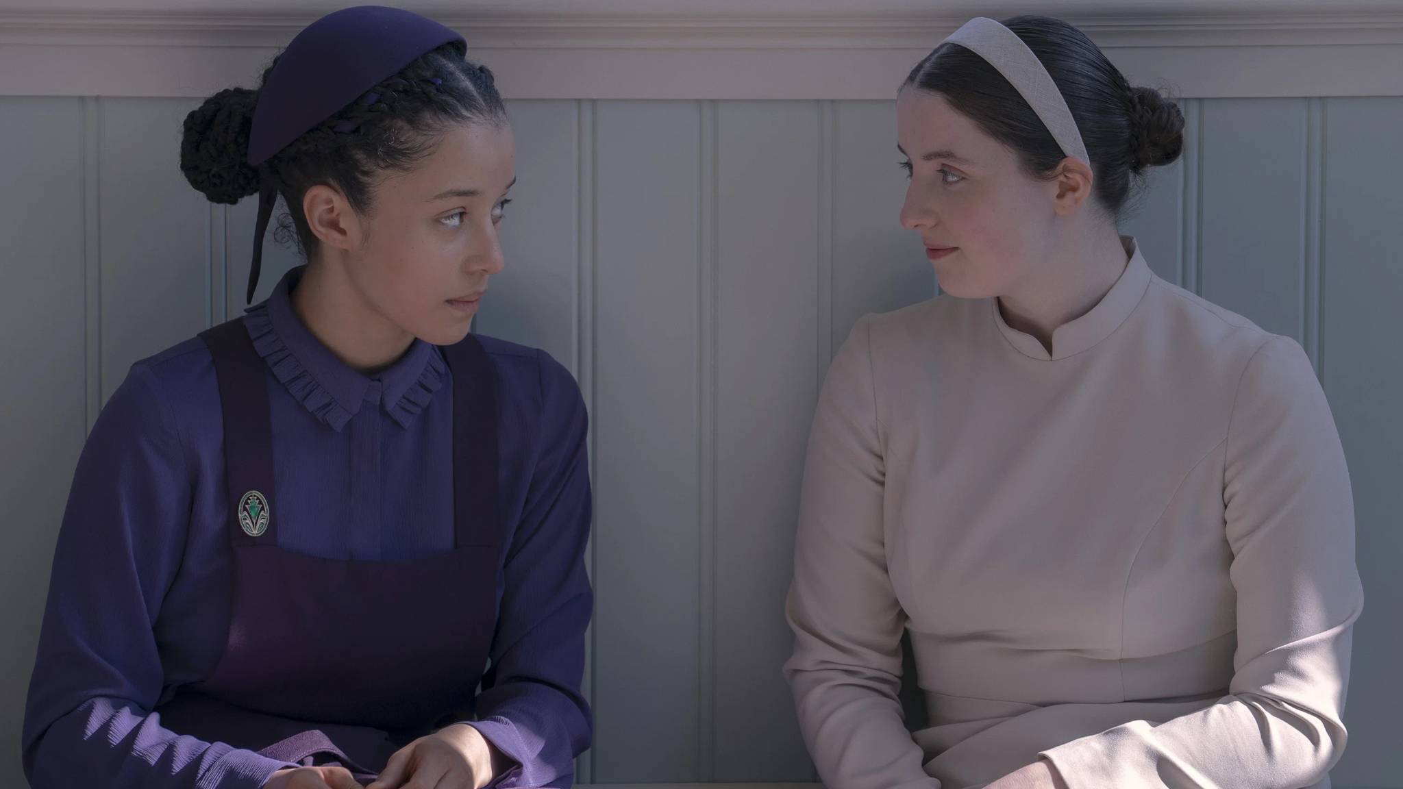 〈핸드메이즈 테일〉의 후속작 〈증언들〉은 신실하고 순종적인 십대 ‘애그니스 매켄지’(체이스 인피니티)와 길리어드 밖에서 건너온 이주자 ‘데이지’(루시 할리데이)의 서사를 그립니다. 특히 시리즈는 두 십대 소녀의 관계와 내적 갈등에 더욱 초점을 맞추며 또래들 사이에서의 감정을 깊이 있게 담아냈죠. 학교를 배경으로 펼쳐지는 이야기이기 때문에 장르적으로는 하이틴의 모습을 갖추고 있기도 합니다.