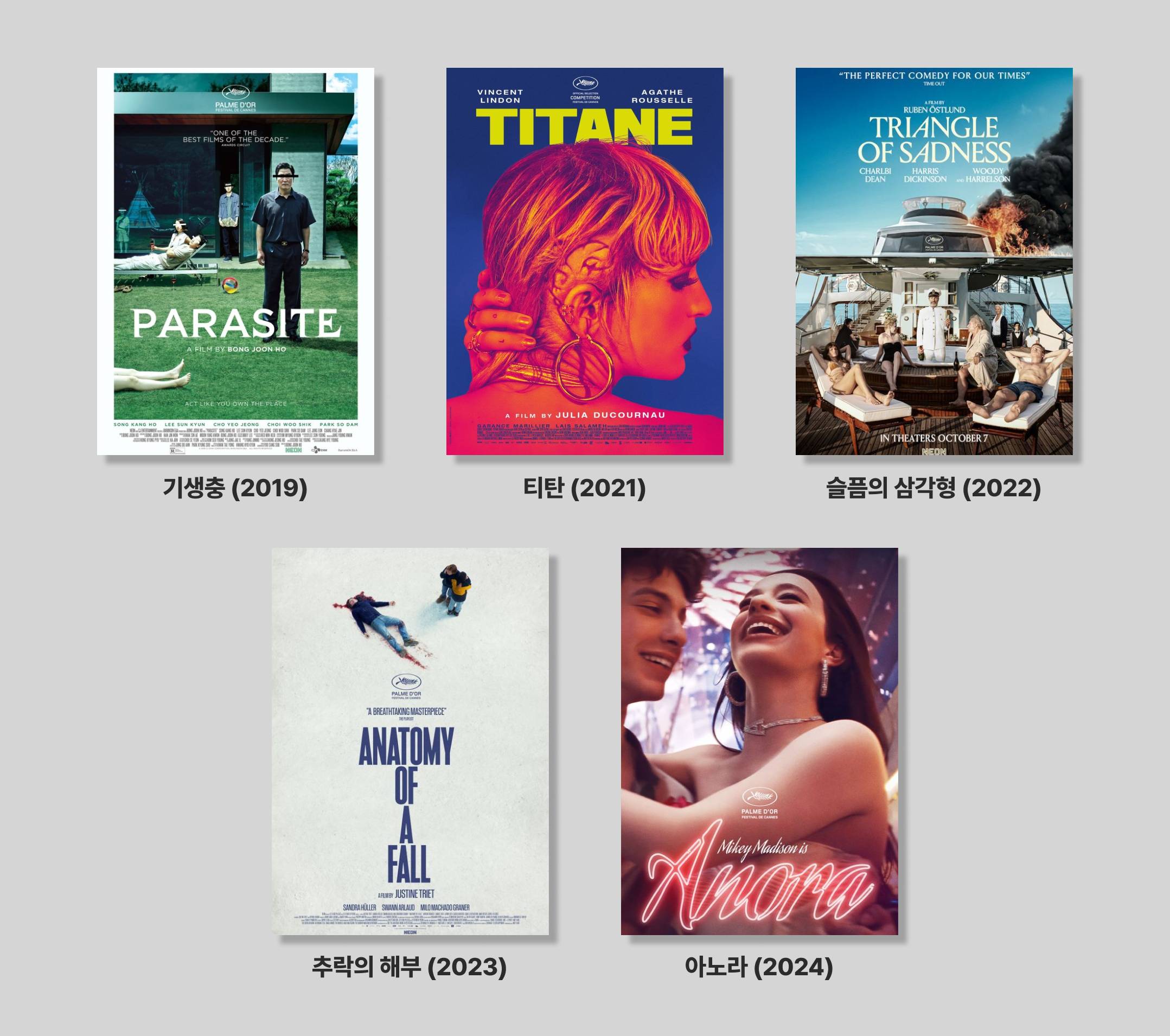 위 다섯 편은 전부 네온의 배급작이자, 칸영화제의 최우수 작품상인 황금종려상을 수상한 영화들입니다. 코로나19로 수상 발표가 없었던 2020년을 제외하고, 네온은 2019년 제72회부터 2024년 제77회까지 연달아 다섯 차례나 황금종려상의 영광을 거머쥐었습니다. 또한, 해당 작품들은 대형 제작사의 작품이 아닌 작은 독립영화임에도 불구하고 박스오피스에서 훌륭한 성과를 거뒀습니다.